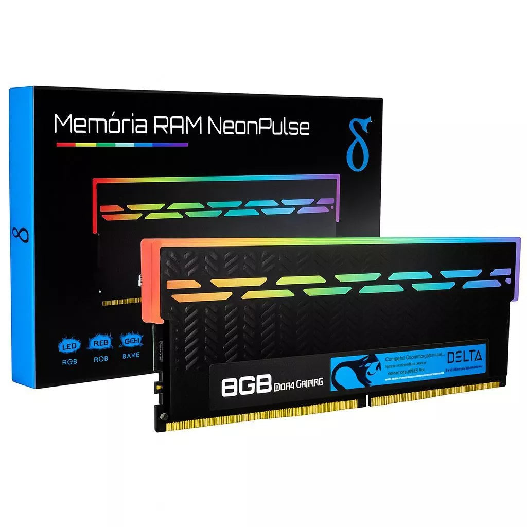 A NeonPulse 8GB DDR4 une desempenho e estilo para gamers e entusiastas. Com dissipador de alumínio que mantém a estabilidade térmica e RGB personalizável, oferece velocidade, baixo consumo de energia e multitarefa eficiente.