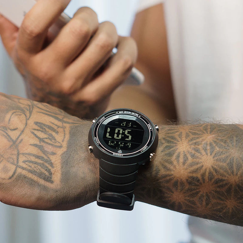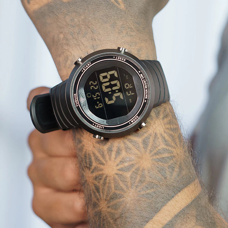 Material: Caixa em Policarbonato, pulseira em silicone, vidro acrílico
